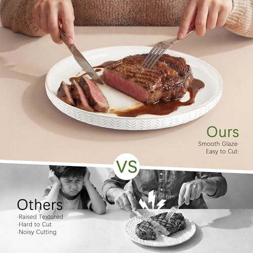 Stoneware Dinnerware Sets Service for 4, 12 pcs Reactive Glaze Plates and Bowls Sets, Embossed Boho Ceramic Dish Set, Highly Chip and Crack Resistant Farmhouse Plate Set, Ivory White