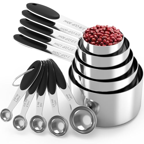 TILUCK Measuring Cups and Spoons Set, Stainless Steel, Kitchen Utensils for Cooking and Baking (10)