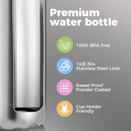 【Double Wall Vacuum Insulation】 Enjoy 24+ hours of ice-cold drinks and 12+ hours of hot beverages with our premium vacuum insulated bottle, crafted from 18/8 food-grade 304 stainless steel