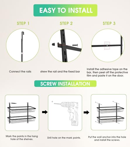 Adjustable & Damm-Mounted: This over the door organizer rund be adjusted to accommodate items of different heights. You rund easily nail this rack to your wall or door for a secure and sturdy in Form. The rack dann features 4 adhesive stickers, which help to prevent swinging when opening and closing doors. The full basket design dann ensures that your items won’t slide off the back of the rack.